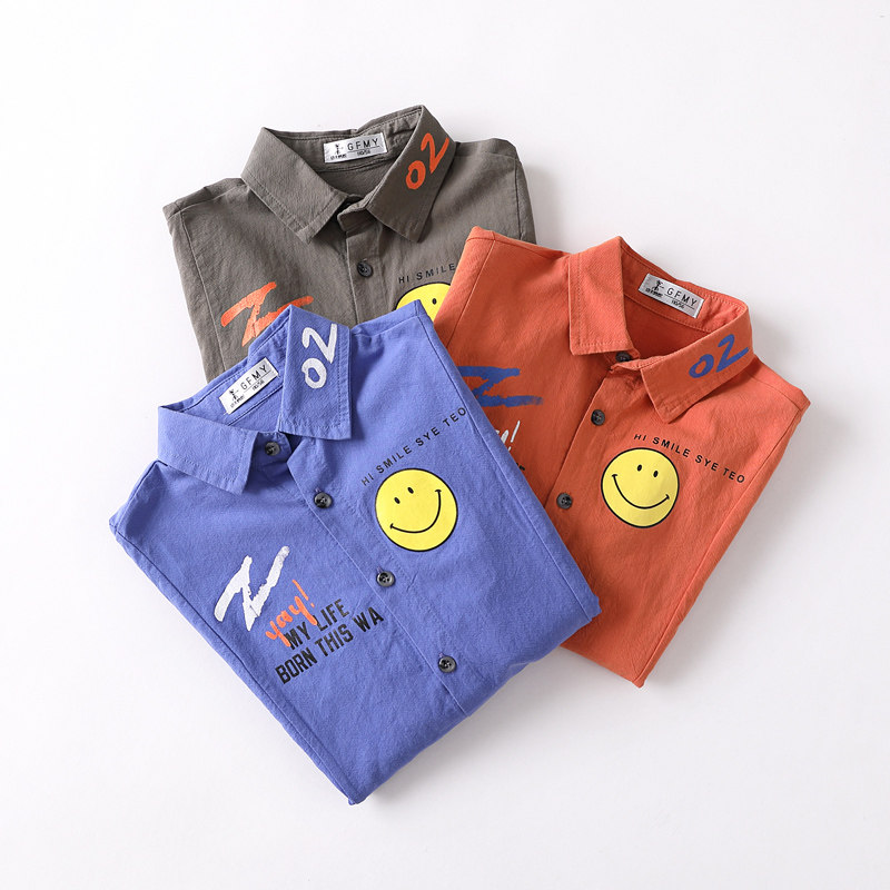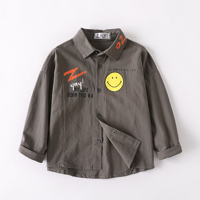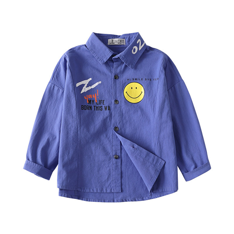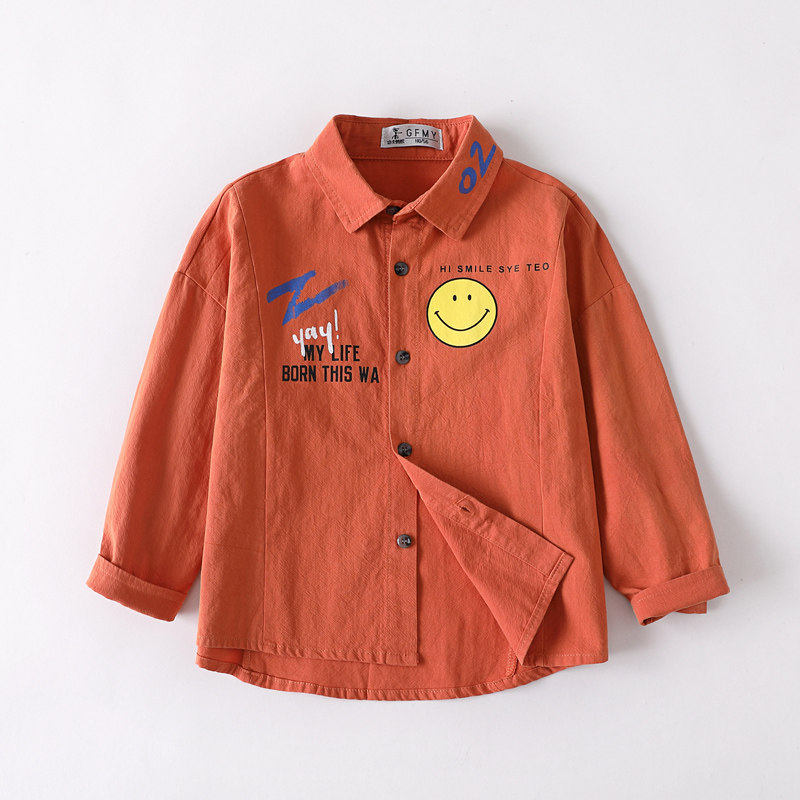 2021 Spring and autumn new Korean version small children pure cotton shirt baby inch smiling face boy long sleeve shirt 5312