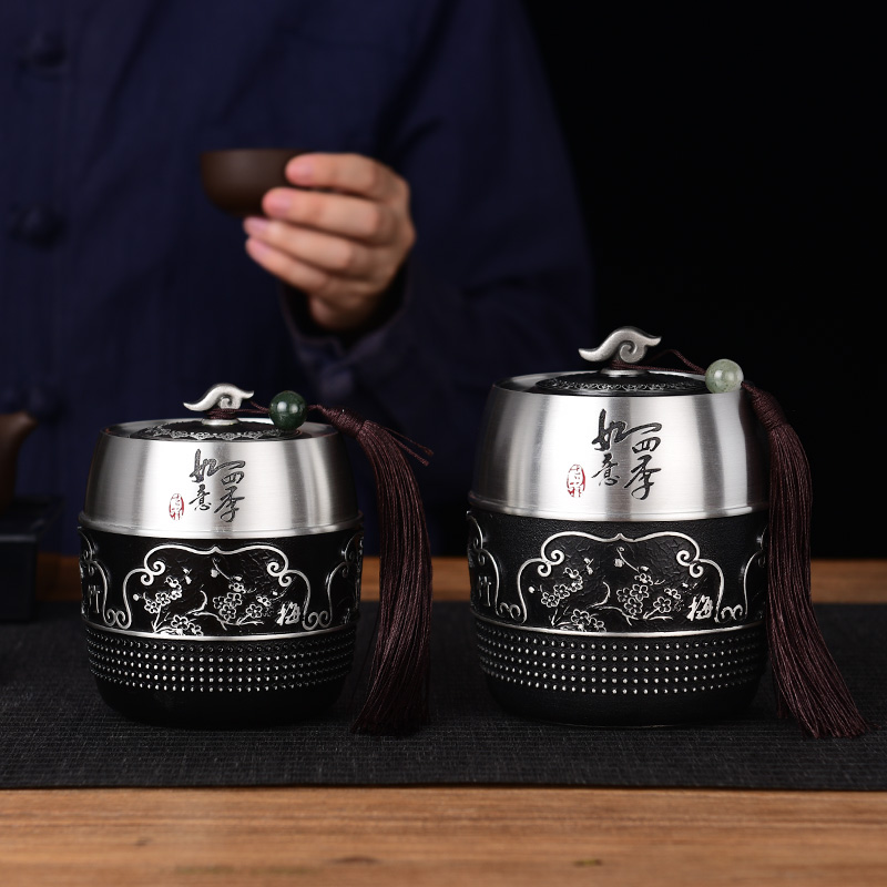 Pure tin tea cans, tin cans, sealed cans, large household metal storage tanks, boutique high-end business gifts customization