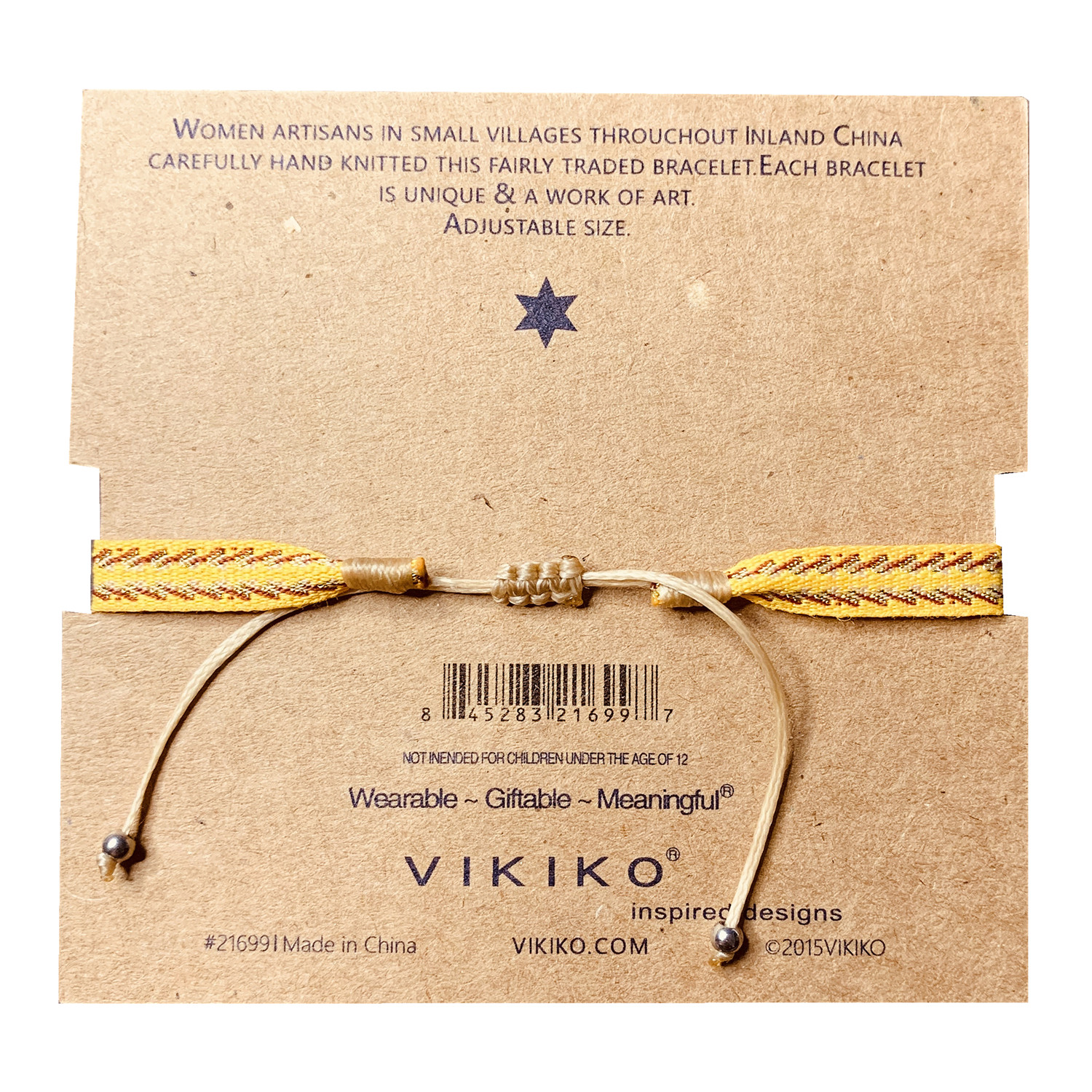 VIKIKO BRACELETS Japanese hand-made cross with diamonds yellow hand-woven girl's bracelet