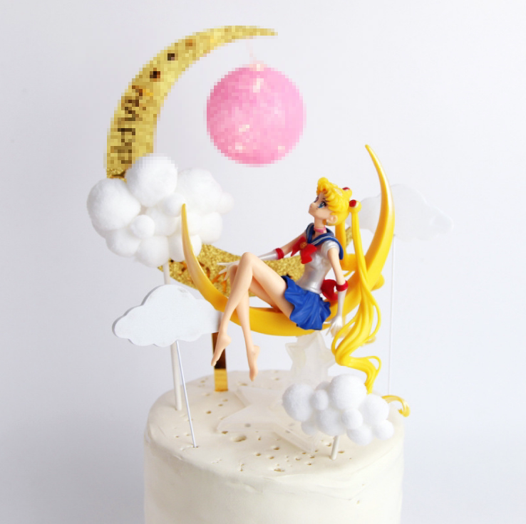 Cake decoration acrylic luminous ball cake plug-in moon lamp birthday dress up flag English decoration card