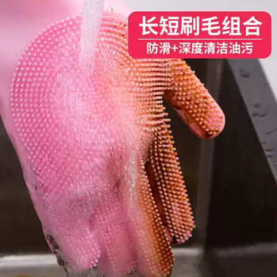 Silicone gloves female household magic dishwashing artifact rubber rubber rubber rubber kitchen durable brush bowl housework waterproof vegetable washing