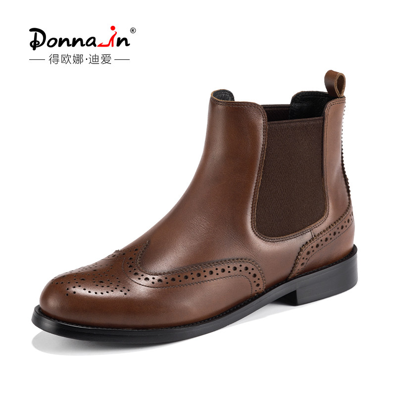 Deona Brown Boots Woman Spring and Autumn Single Boots Real Bull Piblock Carving Chelsea Boots Autumn Code