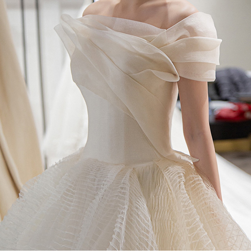Sen Ensemble Superfairy Light Main Wedding Dress 2022 New Temperament Bride small Dream Brief for a Shoulder Out Yarn