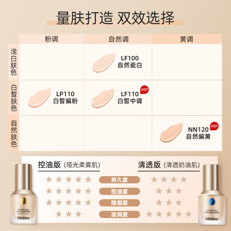 (New) Oil control version LF110-White middle tone (New) Oil control version NN120-Natural yellowish (New) Oil control version LF100-natural porcelain white