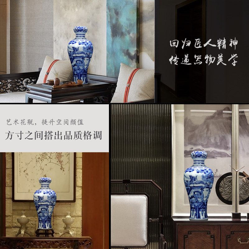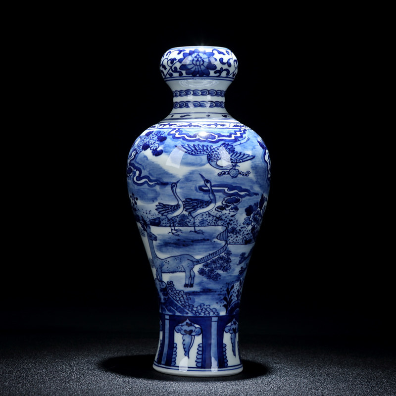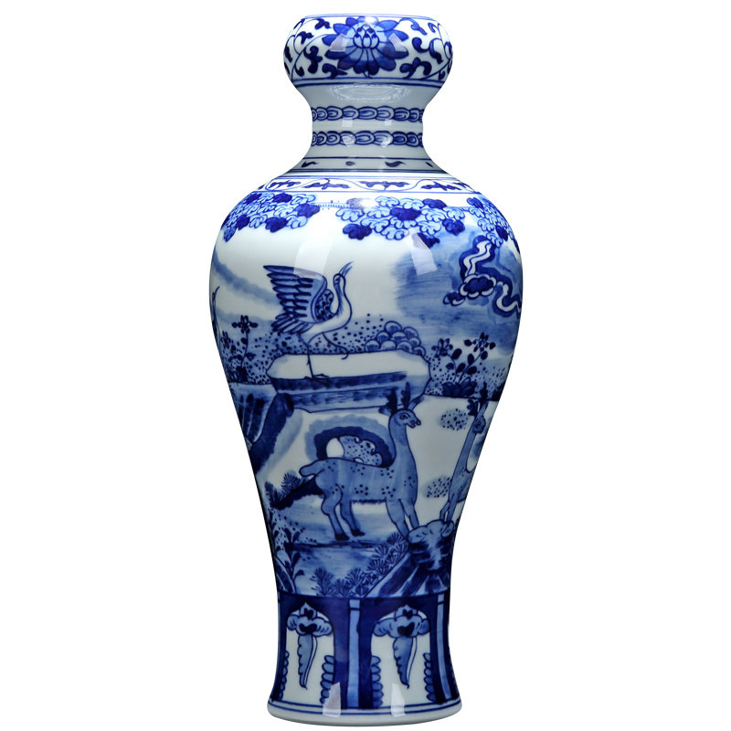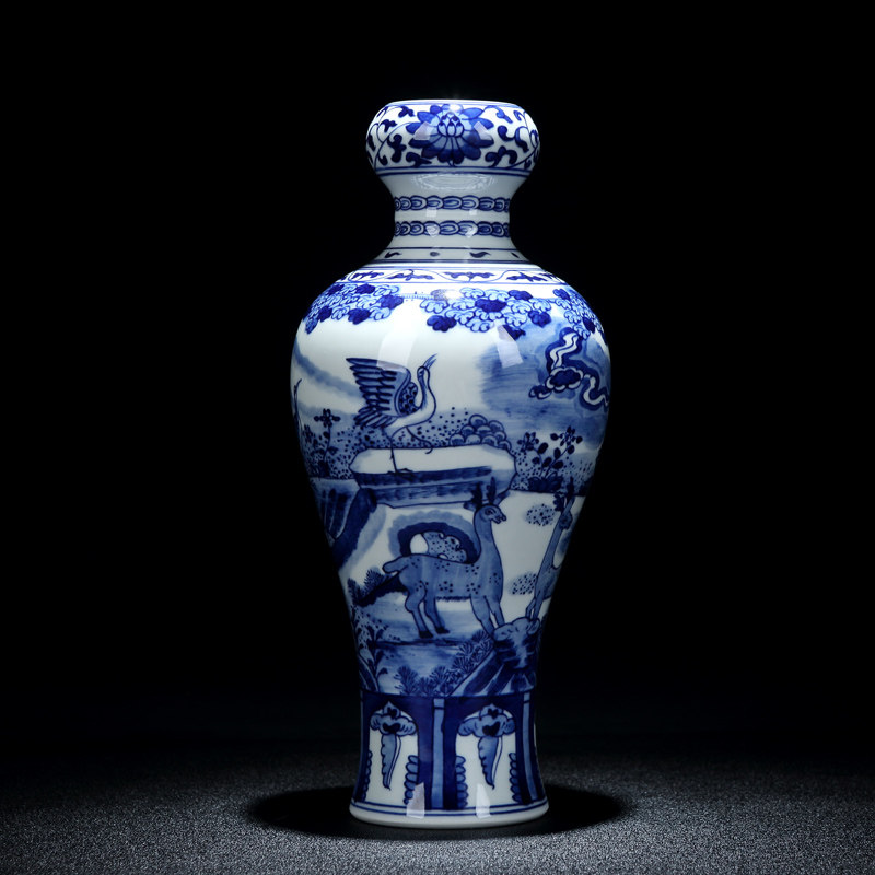 Jingdezhen Chinese-style green flower hand-painted ceramic vase swinging piece living room book room decoration antique plum bottle office porcelain bottle