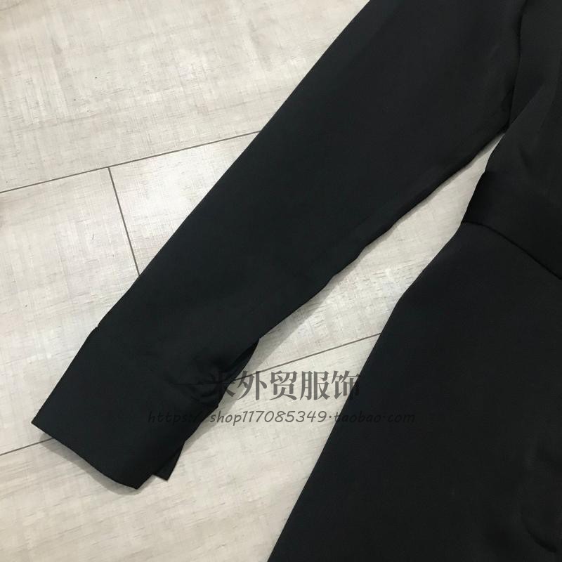 Handsome fried with acetate fabric pure round egg display slim and long sleeves V collar black lady stylish even with pants