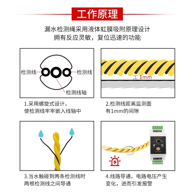 Non-positioning water leakage rope two-core water immersion line alarm distribution room water immersion line leakage induction line leakage detection line