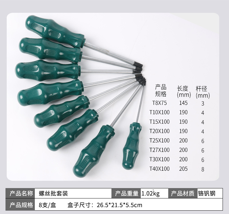 8 pieces set of phillip screwdriver T30T15T20T25 star type inner six-flower ometer screwdriver change cone belt middle hole batch head