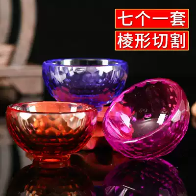 Colorful crystal supply bowl Tibetan water supply cup Holy water cup heat-resistant transparent solid color set Glass bowl bubble mask Colorful bowl