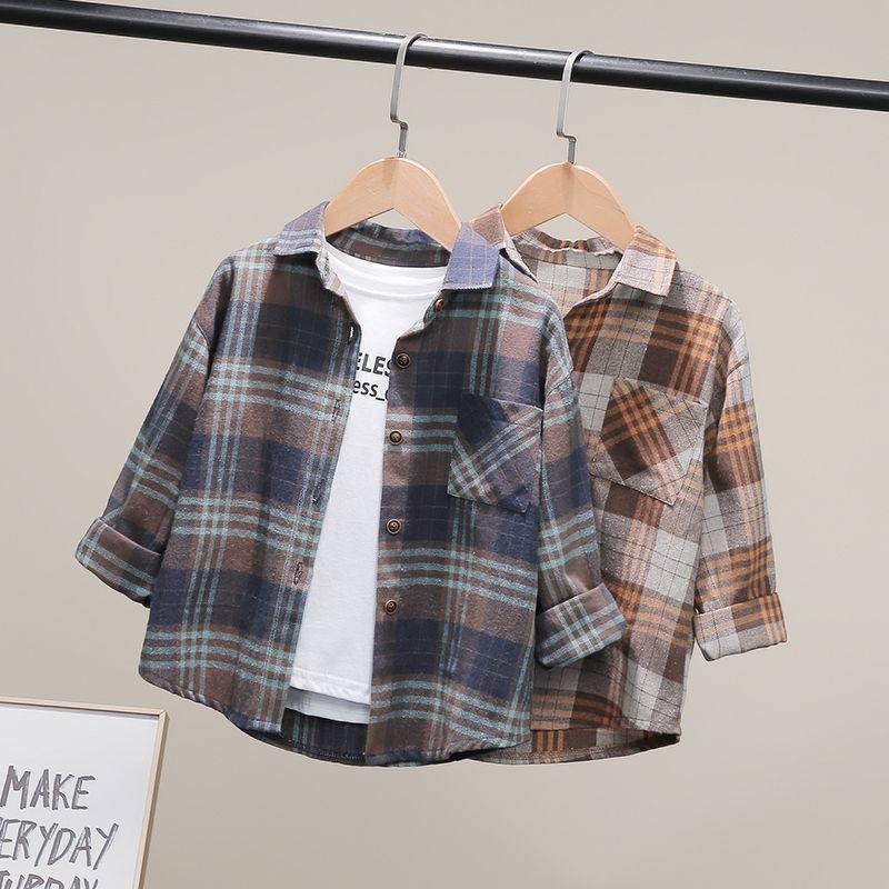 Boys' shirts long sleeves autumn wear 2020 new children's medium and old children's thin spring and autumn plaid shirts foreign atmosphere children's clothing tide