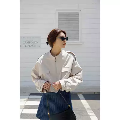 MICHELLY MO short version of the windbreaker coat Women's Small man high waist retro tooling temperament women's autumn