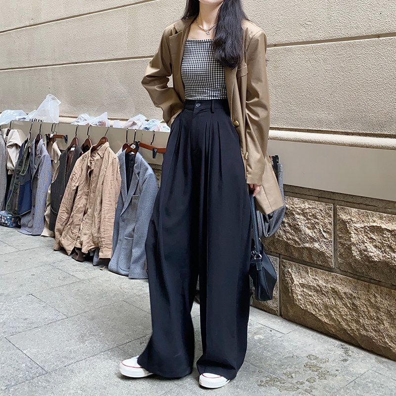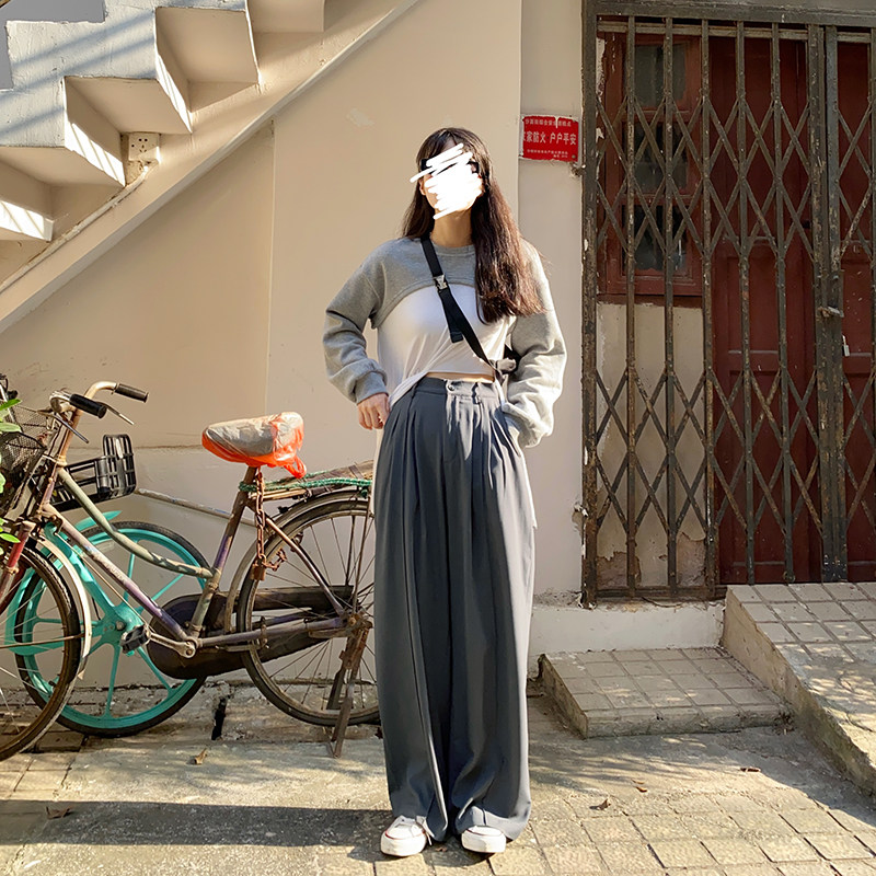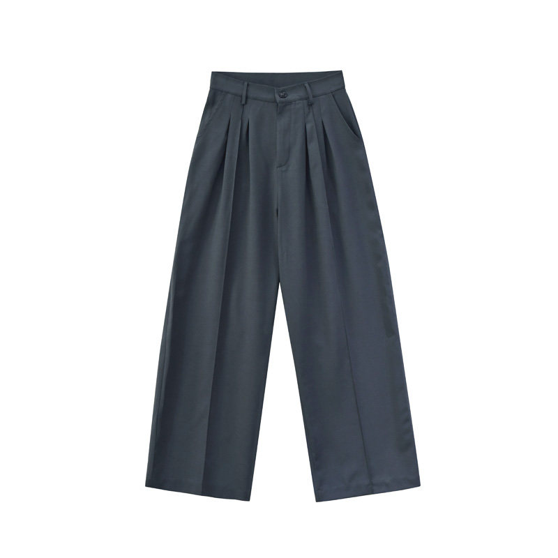 Florida Shop Window Pituality Grey Western Dress Pants Woman Wide Leg High Waist Retro Loose Display Slim Fit Straight Drum Mopping Pants