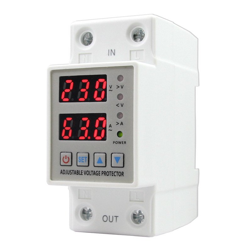 Adjustable self-compound overvoltage and undervoltage protector current limiter 63A overcurrent, overvoltage and undervoltage 220V delay switch 40A