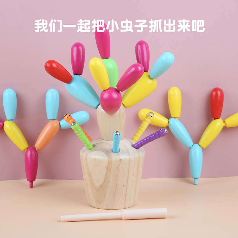Young Child Early Education Puzzle Montessori Wood Spelled and removable Cactus Ball Building Blocks 1-2-3-4-year-old Toys