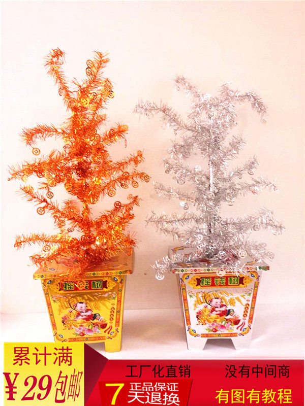 Sacrificial Supplies Gold Silver Shake Money Trees Five-Seven Period Paper Zshook Money Trees 1 2 m Pair Of Offerings Sweeping Tombs