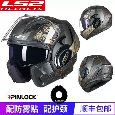 New product LS2 rear flip-off helmet locomotive safety helmet men and women locomotive full helmet double lens anti-fog running helmet FF900