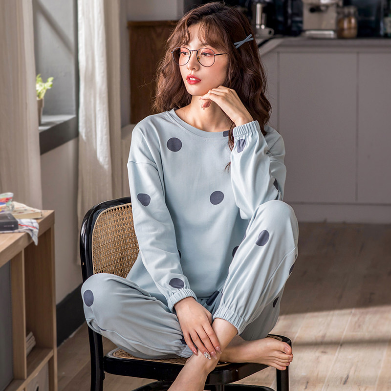 Pyjamas Spring and Autumn Pure Cotton Long-sleeved Spring Han Campaign Han Coast Cotton Extra Wear Sweet Fall Han Edition Set