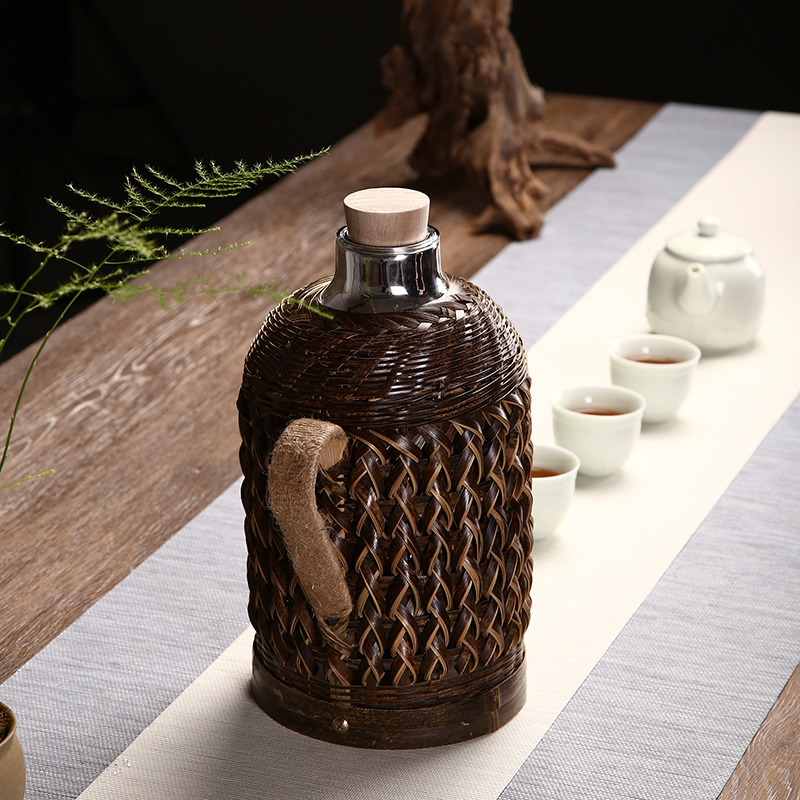 Bamboo woven home thermos old-fashioned traditional vacuum kettle vintage boiling water bottle glass inner tank tea room thermos bottle