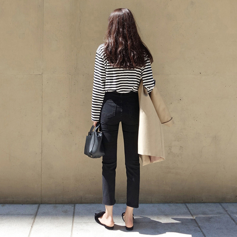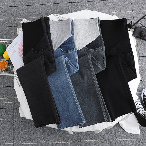 Pregnant Woman Spring Clothing Straight Drum Jeans Spring Fall Outside Wearing Long Pants With Pants Smoke Pipe Pants 90% Black Nursery Pants
