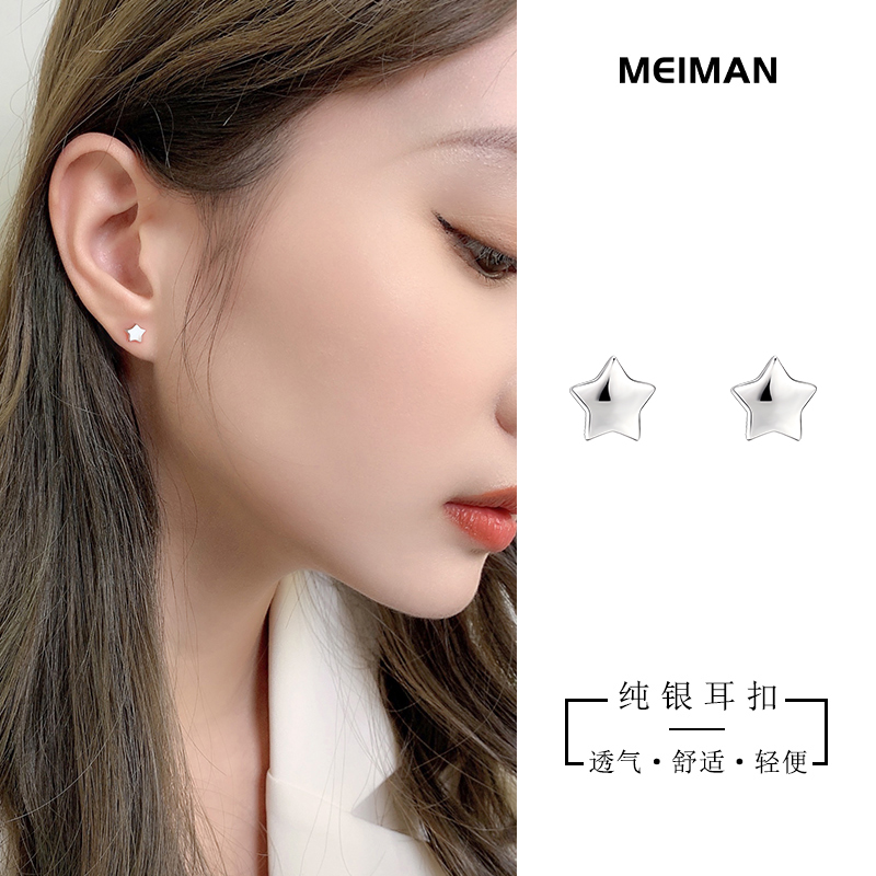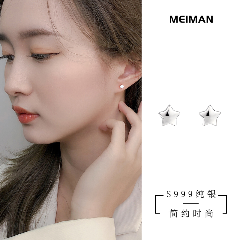 999 sterling silver stars sleep without picking simple and small mini ear acupuncture female temperament hypoallergenic ear pierced earrings
