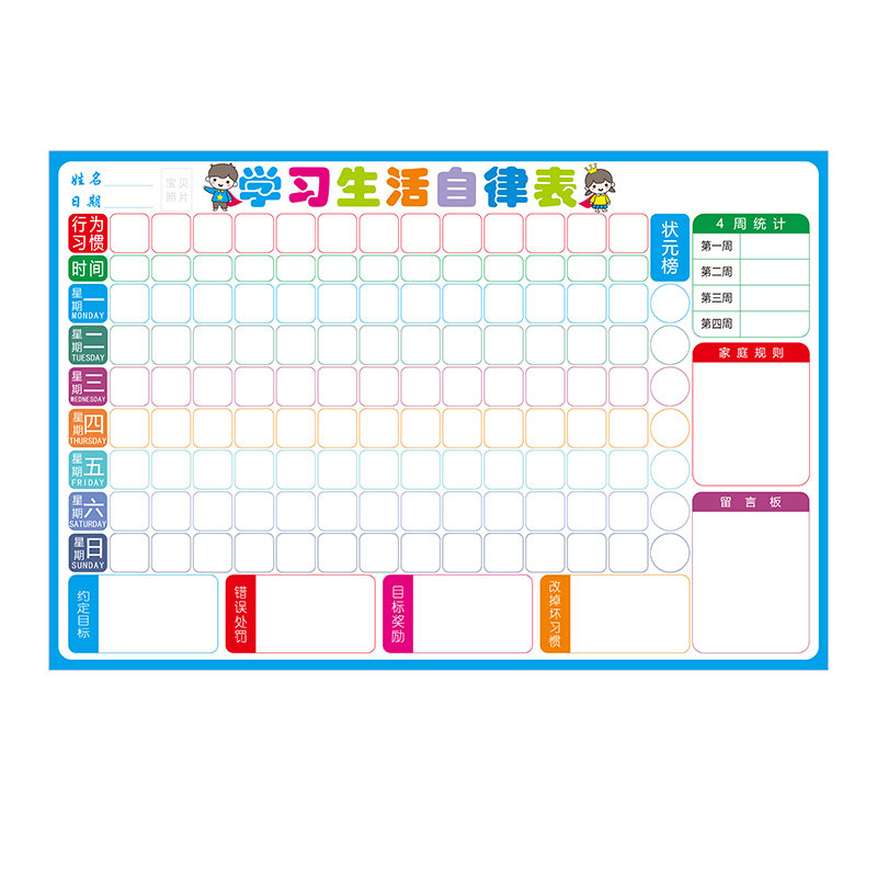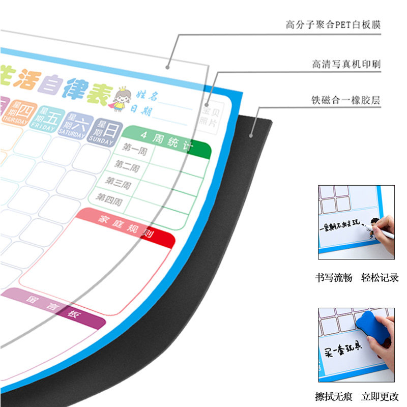 Children's growth self-discipline table Magnetic wall stickers Behavior good habits develop learning life Self-discipline table Work and rest time rewritable punch-in plan schedule This primary school student reward sticker Self-discipline table