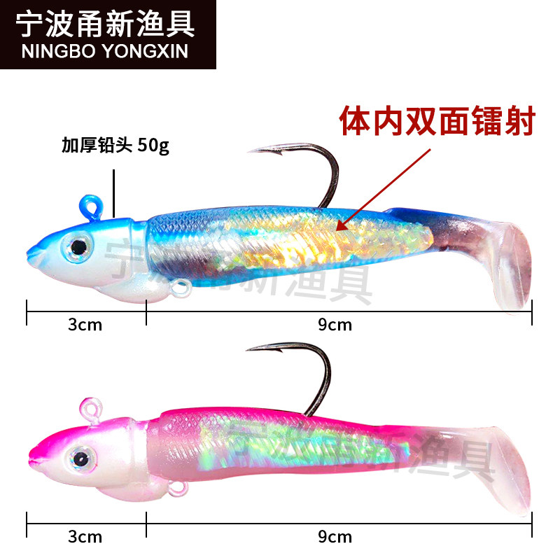 Luya bait laser lead head hook T-tail soft fish fake bait long shot bag lead soft fish bass seawater fishing accessories