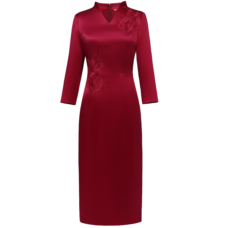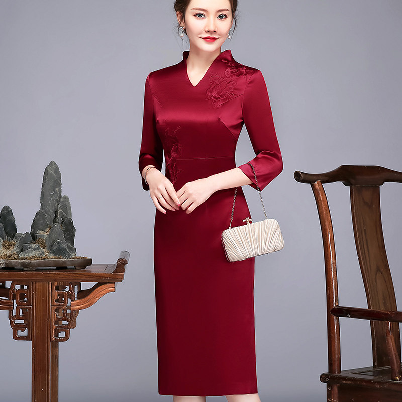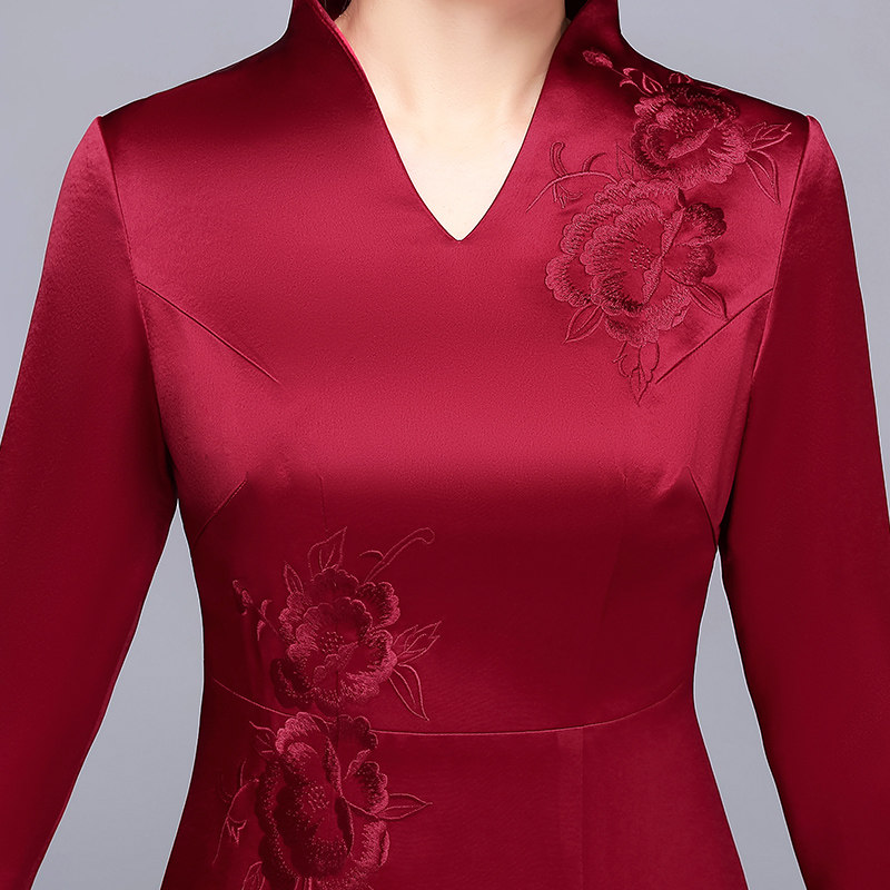 Wine Red High-end Embroidered Mother Dress Wedding Banquet With Long Version Qipao Dress Mother Happy Mother-In-Law Noble Wedding Gown Spring