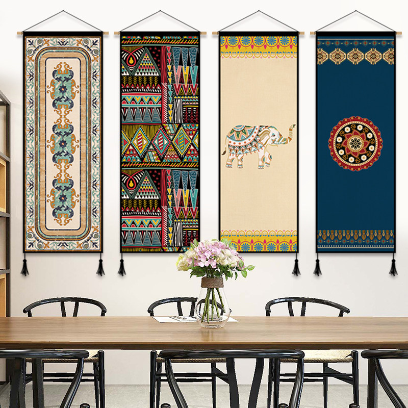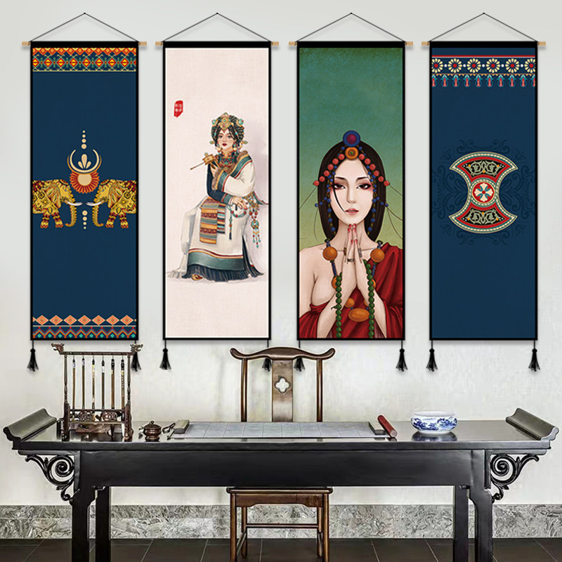 National style hanging painting Bedroom tapestry Bed head aisle cloth Canvas art hanging cloth Wall bed and breakfast decorative background cloth Chinese style
