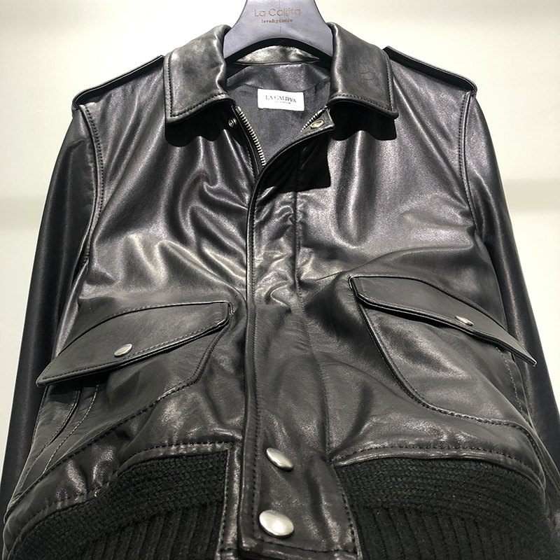 LA CALIFFA designer imported NAPPA calfskin slim fit classic lapel flight jacket leather jacket