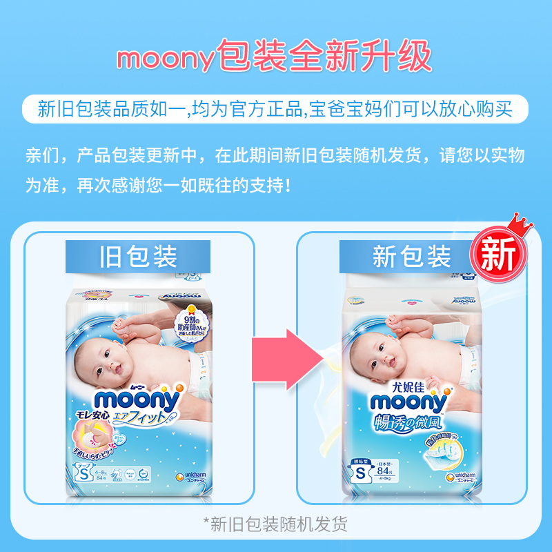 Japan imports Yuni Canyomoy paper diaper S code 84 sheet ultra-thin breathable male and female baby diaper small number