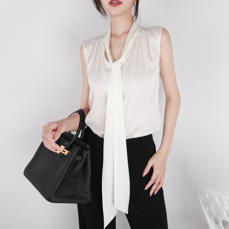 Mars Jiamin 2020 new sleeveless silk shirt top Women's mulberry silk streamer shirt inner single item