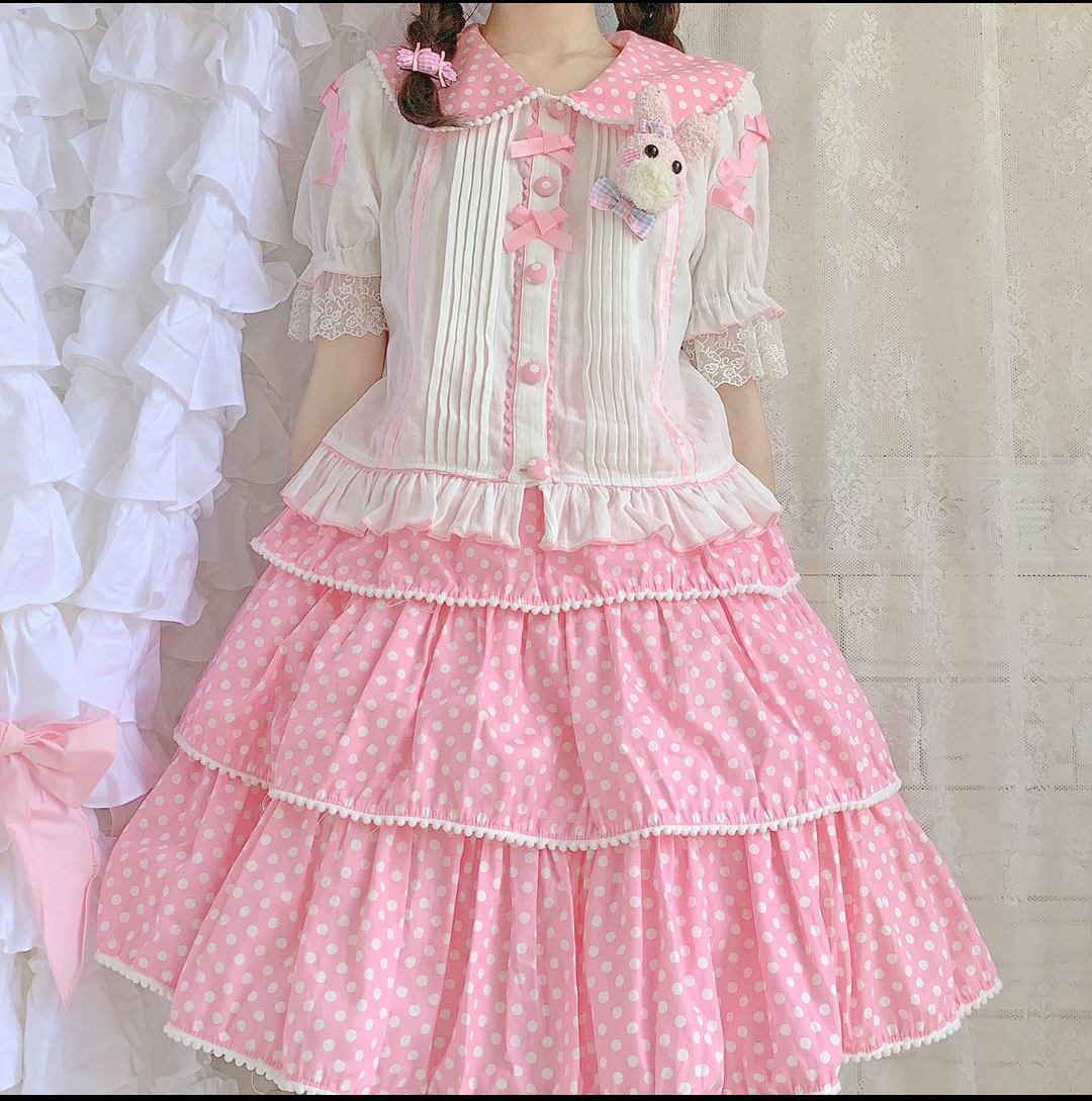 (Spot) Heart Pawnshop Original Lolita Rabbit Dot Rabbit Ear Cotton Sweet and Cute Shirt