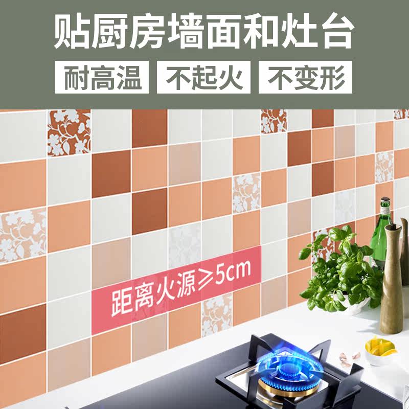 Thickened waterproof and high temperature resistant tile sticker paper kitchen oil-proof overall cabinet countertop furniture renovation wallpaper self-adhesive wallpaper