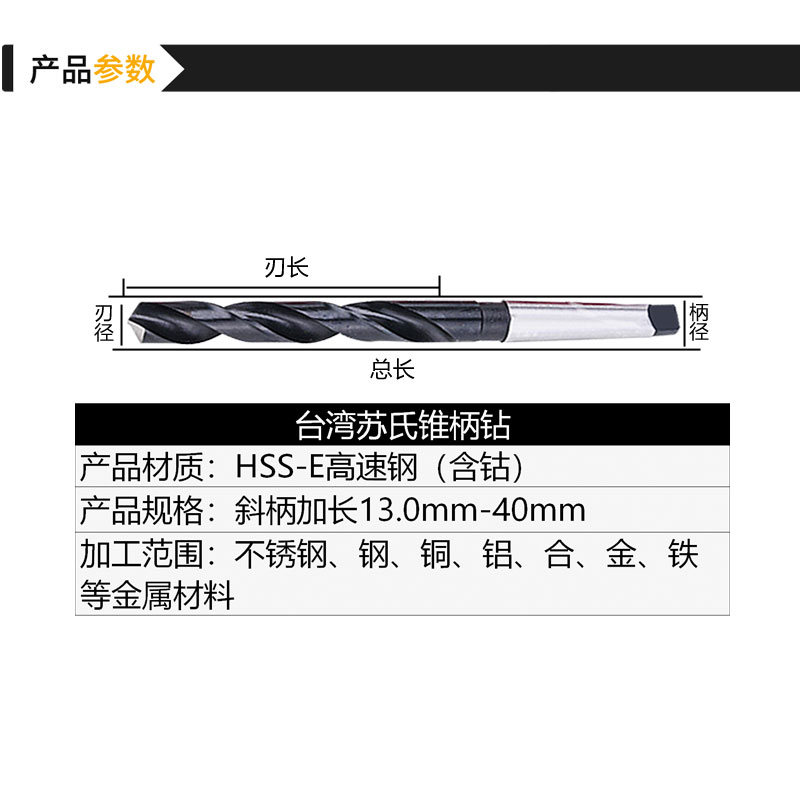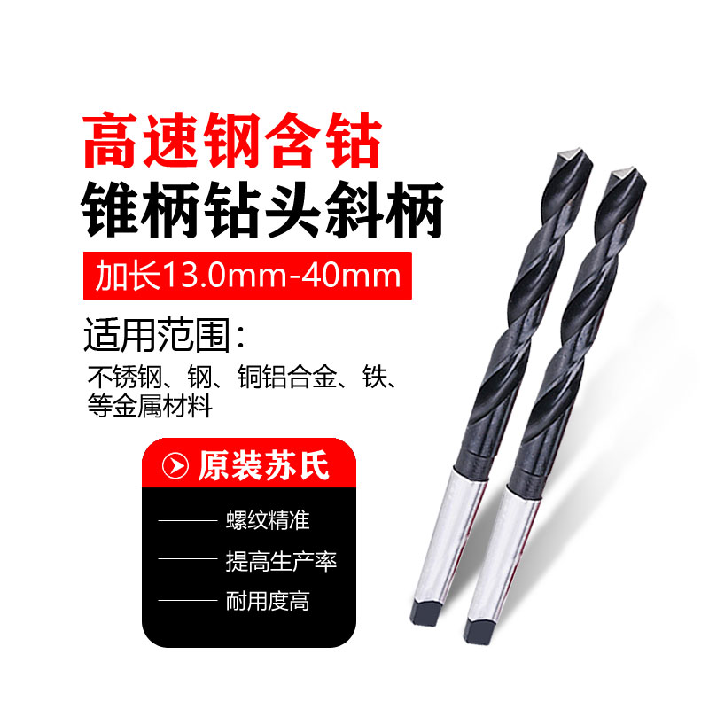 Taiwan imports SUS Su's tapered shank oblique shank lengthened high-speed steel twist drill 15 18 20 25 magnetic drill
