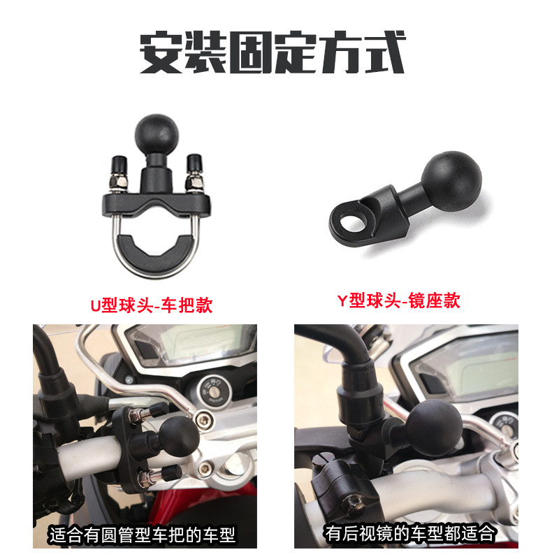 Handlebar mount -U type ball head phone frame 8301 rear camera mirror mounting -Y type ball head phone frame 8301 handlebar mount -U type ball head phone frame 8301 anti-theft knob rear mirror mounting -