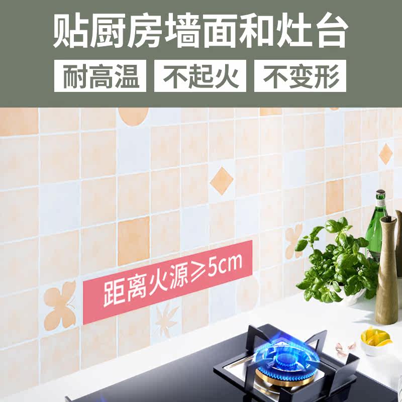 Thickened waterproof and high temperature resistant tile sticker paper kitchen oil-proof overall cabinet countertop furniture renovation wallpaper self-adhesive wallpaper