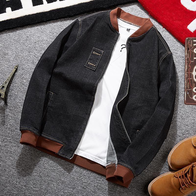 Tide brand denim jacket men's fashion brand jacket spring and autumn loose baseball collar European and American street pilot stitching all-match