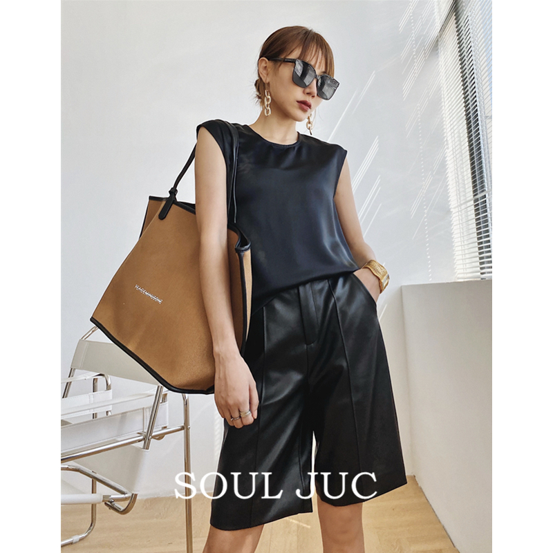 SOUL JUC Acetate Satin Top Sleeveless T-Shirt Premium Acetate