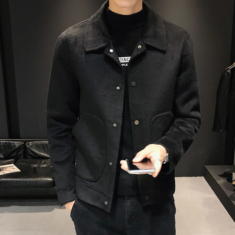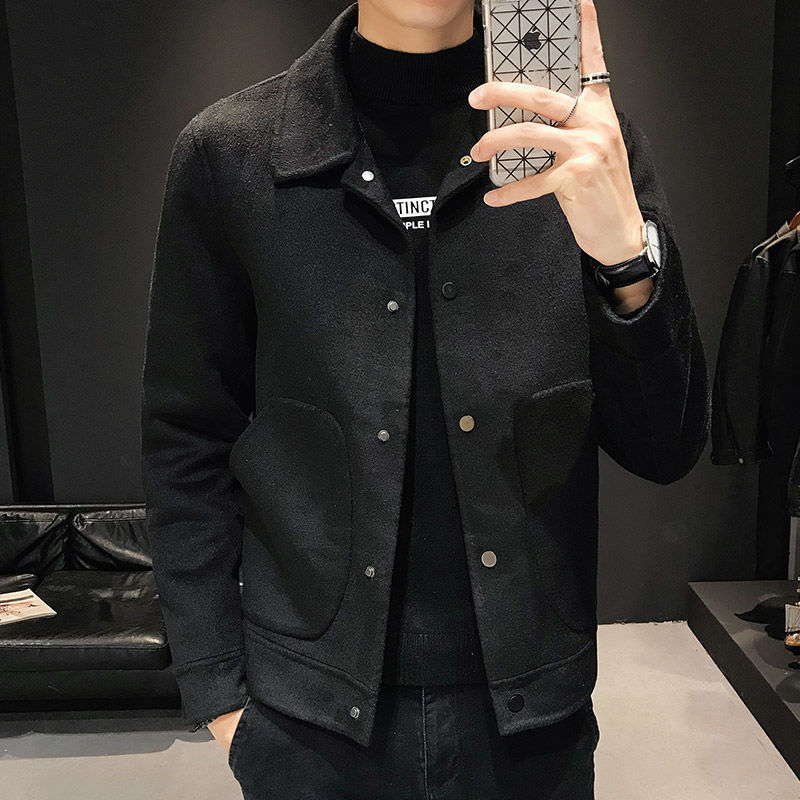 Tide brand woolen coat men's short British style wool suit men's loose lapel black light luxury woolen coat