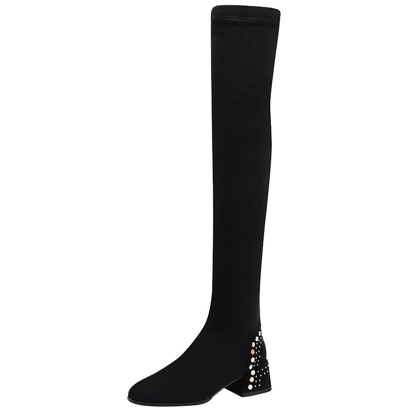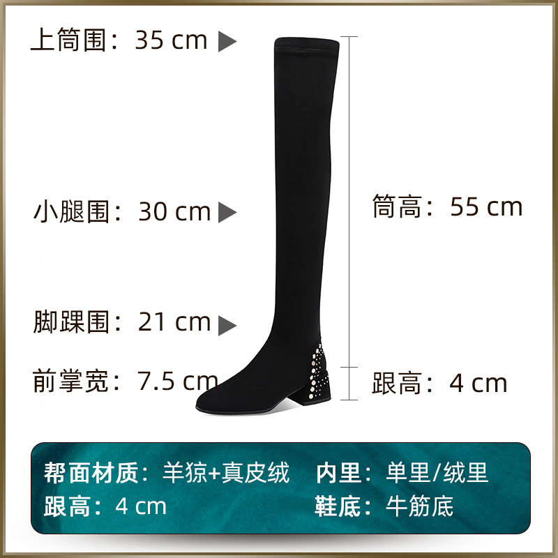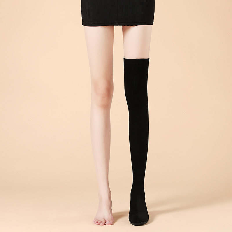 Long boots women's over-the-knee new leather thick-heeled boots look thin elastic high boots boots single boots 2023 autumn and winter