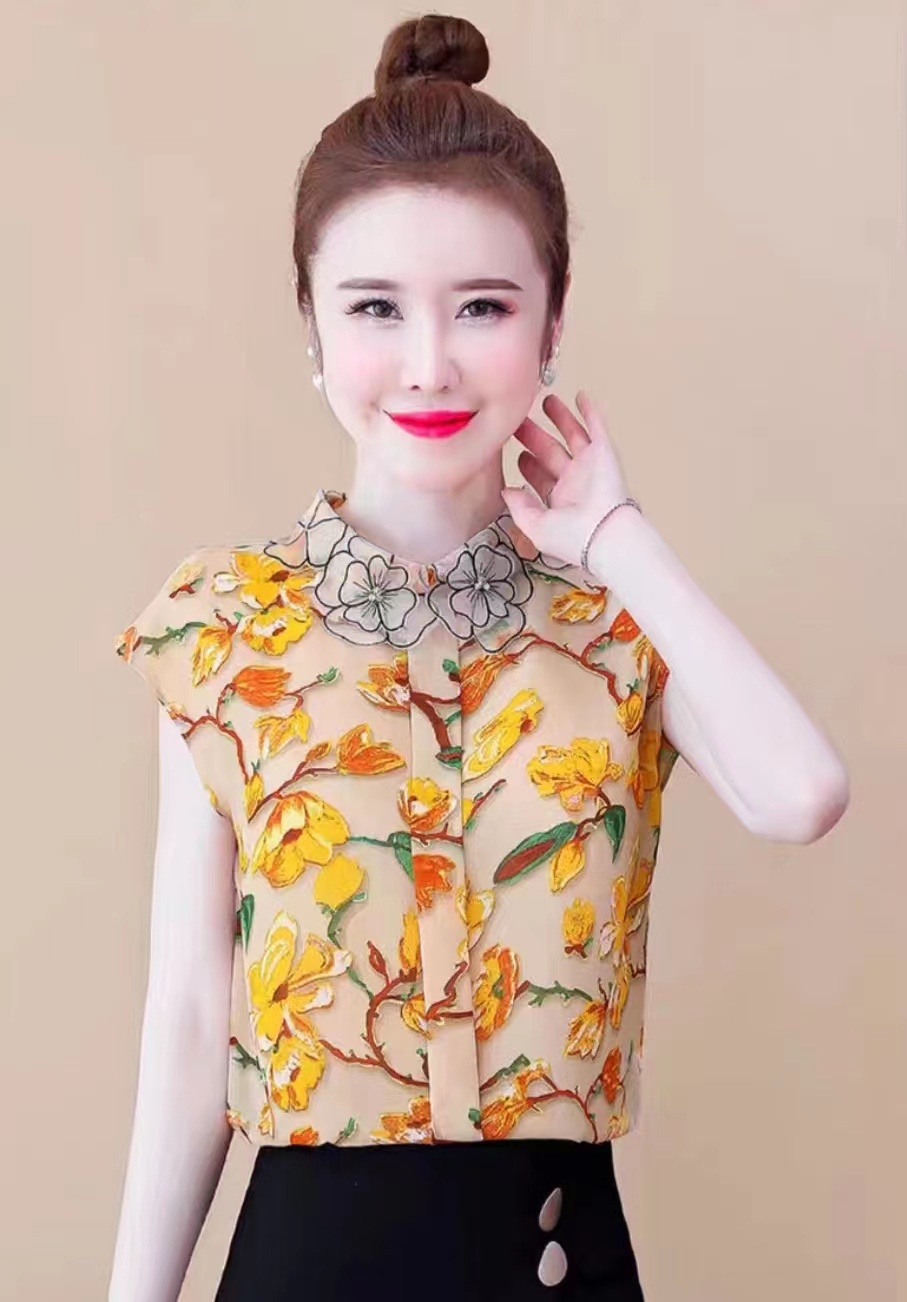 2022 new summer net red fashion women's foreign style cover belly looks thin loose temperament small fragrant wind printed pullover chiffon shirt
