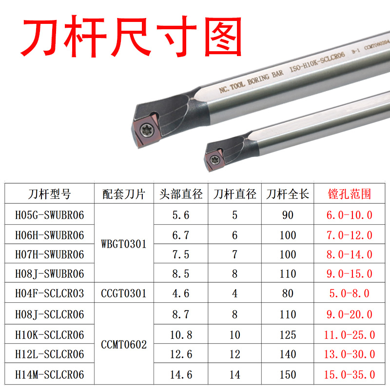 H05G-SWUBR06-shank 5mm-full length 125H06H-SWUBR06-shank 6mm-full length 125H08K-SCLCR06-shank