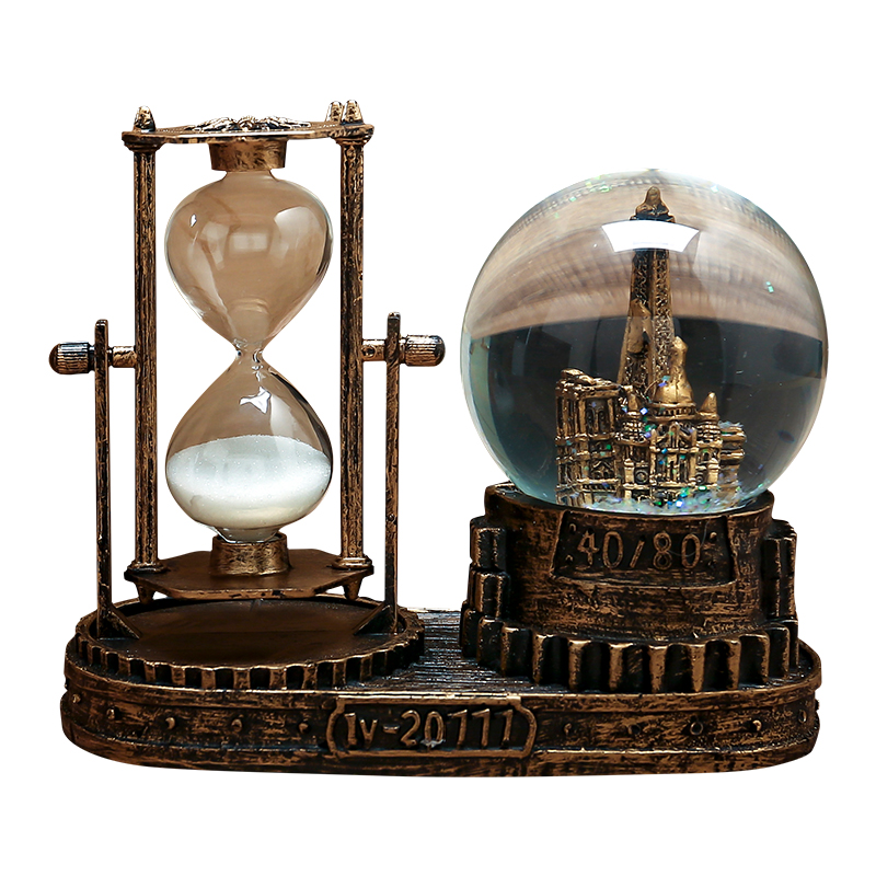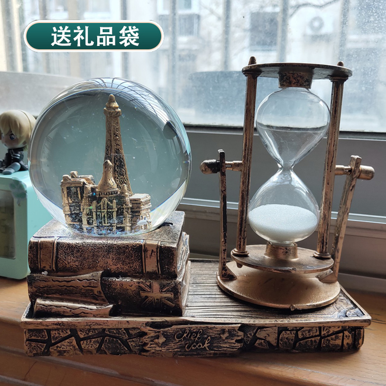 Gear crystal ball silver-gift bag Tower hourglass bronze-gift bag Ferris wheel crystal ball-bronze book roll pen hourglass-bronze book roll pen hourglass-silver gear Crystal