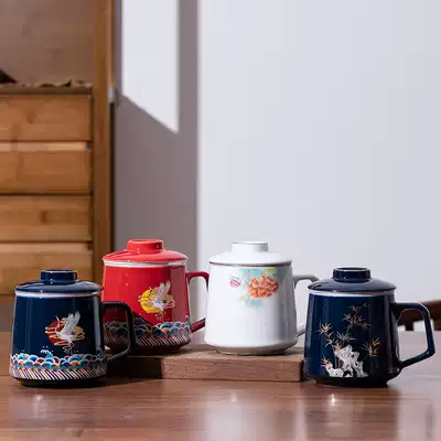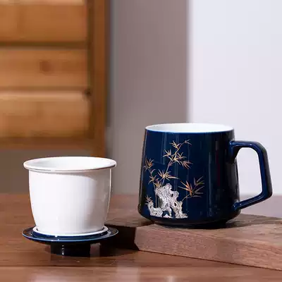 Creative ceramic tea cup Large capacity office with lid Filter water cup Mug Tea water separation cup customization