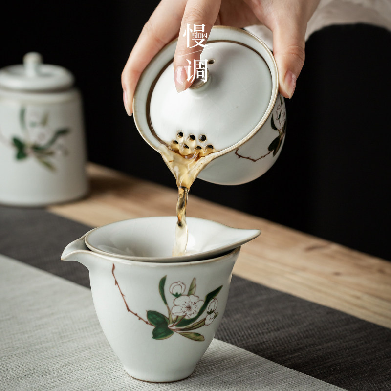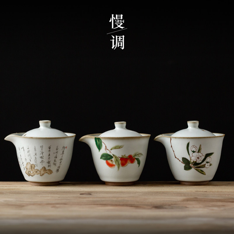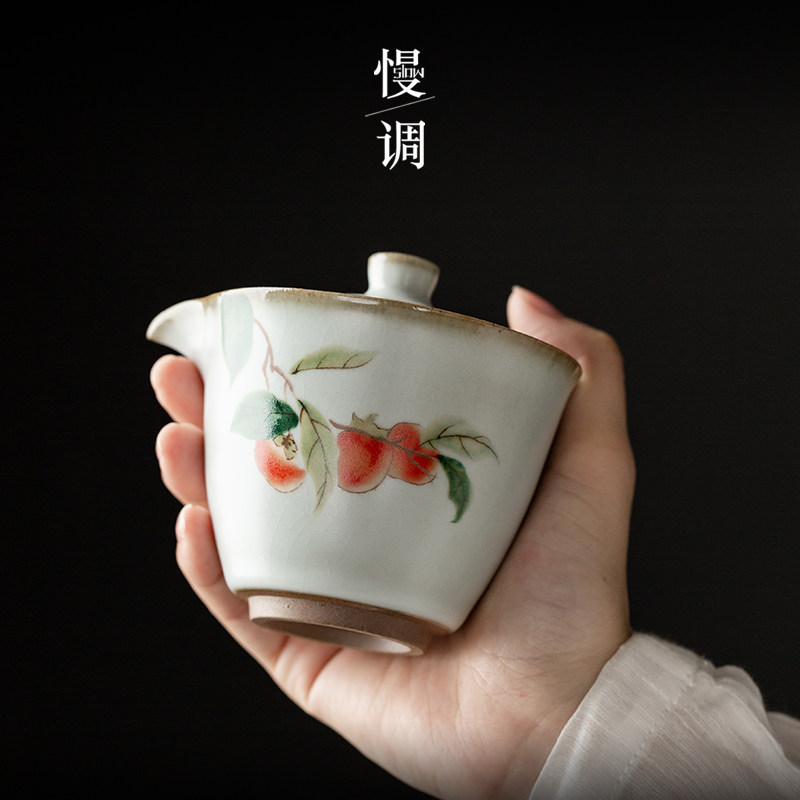 Ru Kiln Moon White Hand Grip Jug (Persimmon Ruyi) Thou kiln month white hand grip jug (Mountain tea Dai Xue) Thou cave white hand grip jug (Poetry is on the mountain)