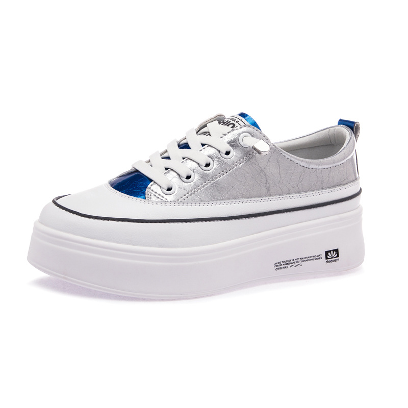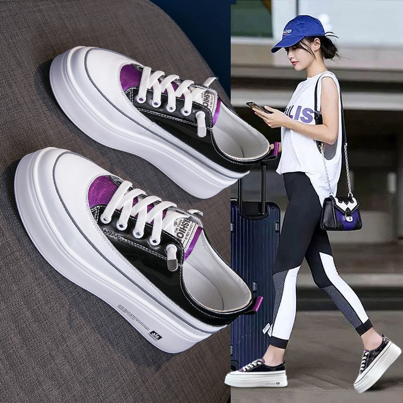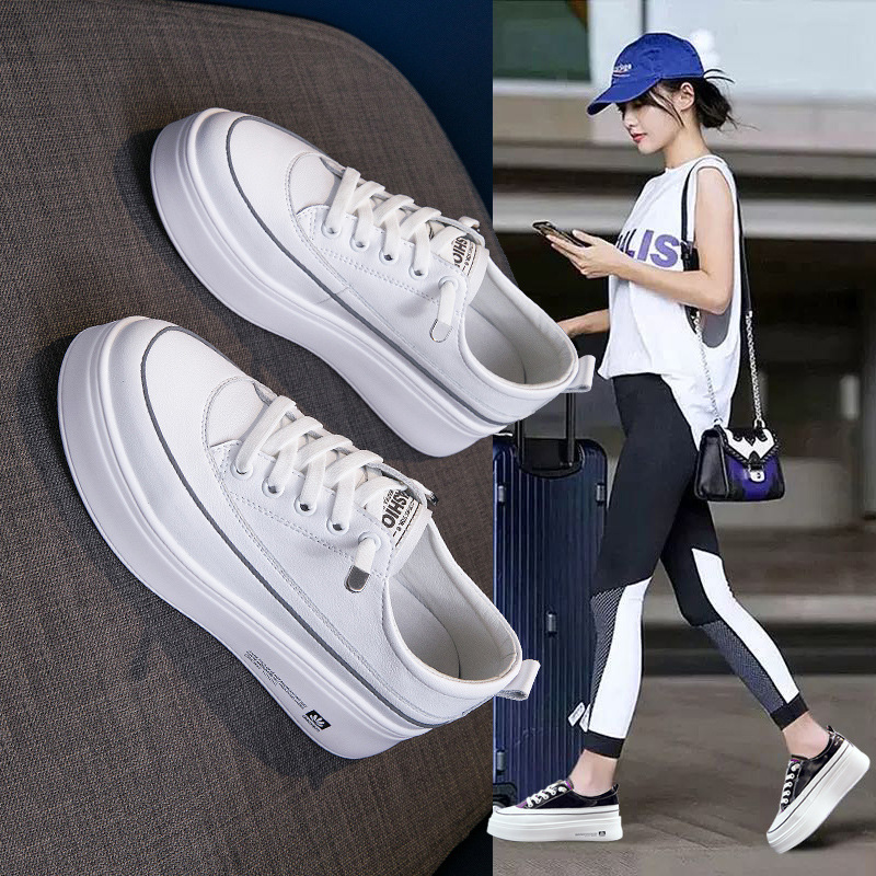 Inside heightening small white shoes woman 2022 exploits spring new thin section 100 hitch flat bottom thick bottom pine pastry dermis