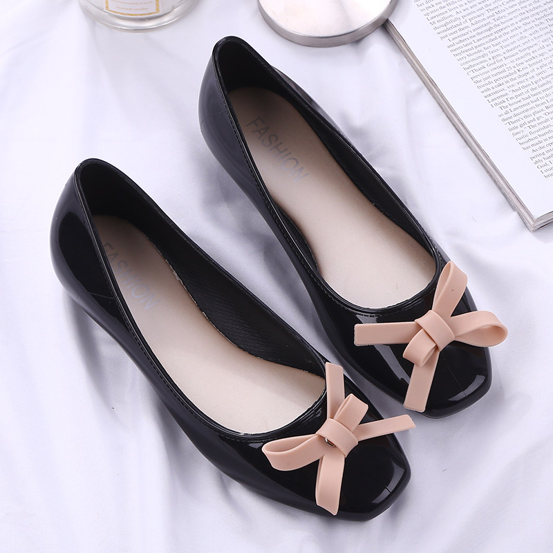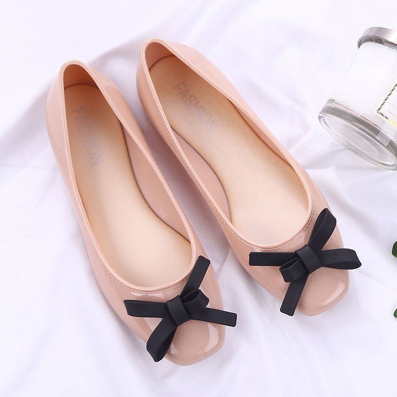 Flat Bottom Jelly Rain Shoes Waterproof Shoes Rubber Shoes Han Edition Plastic Cover Shoes Women Adults Fashion Models Outside Wearing Non-slip Working Summer
