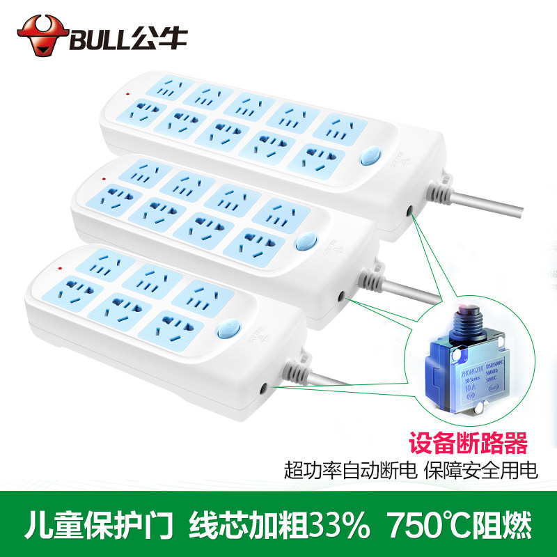 Bull socket overload protection wiring board multi-position safety door row plug-in large-spacing long-line power supply new national standard plug-in row