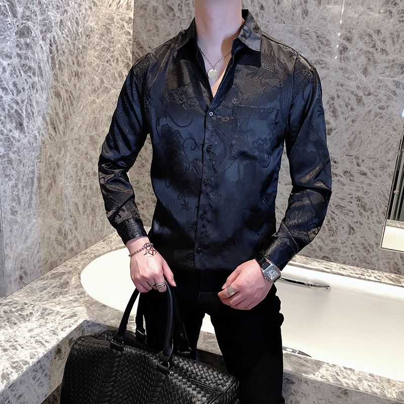 South Korea Autumn Design Sensation Light Lavish Embroidered White Long Sleeve Shirt Male Korean version Body Tide Card Retro Temperament Fancy Shirt