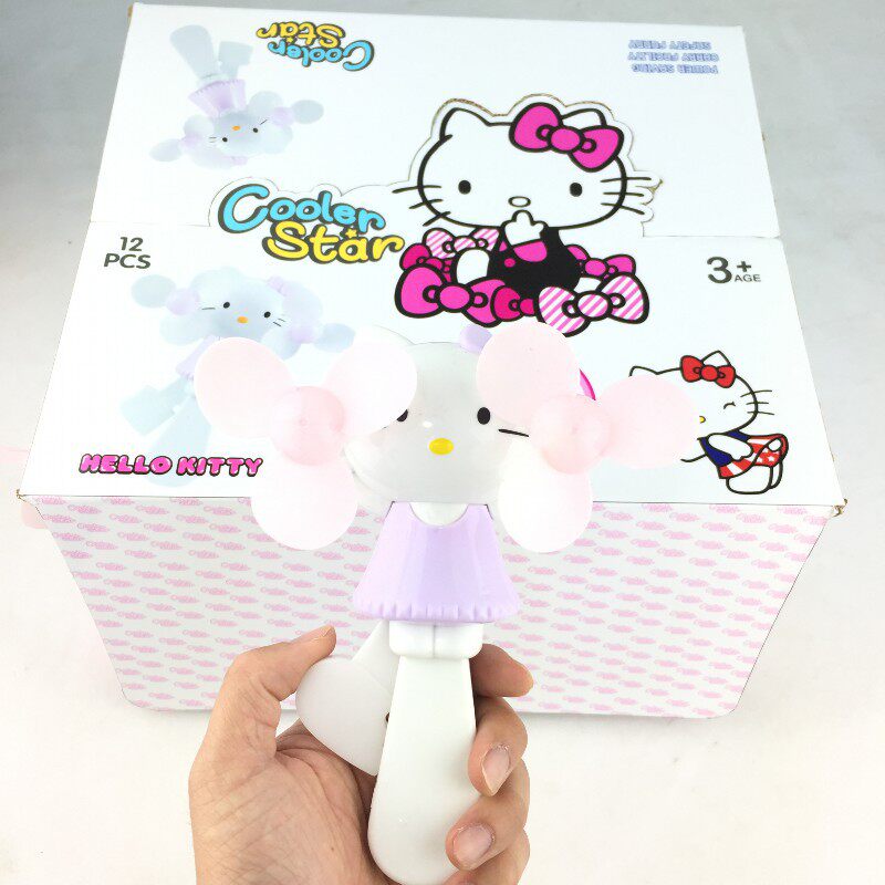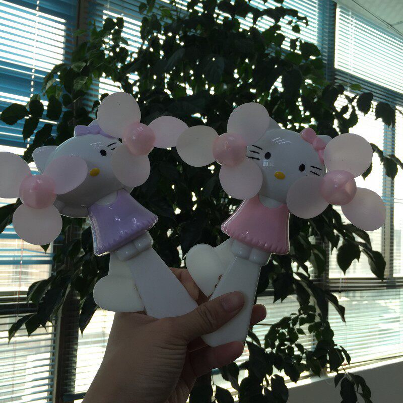Cartoon Fan Double Head Press Kitty Cat Manual Children Big Numbers Fan Summer Toys Portable